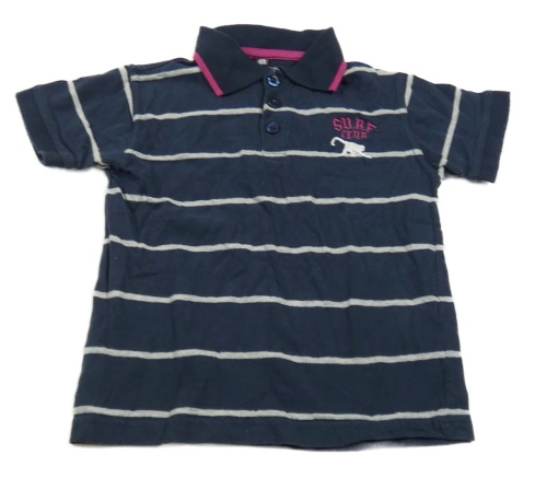 Tmavomodro-bílé pruhované polo tričko s výšivkou