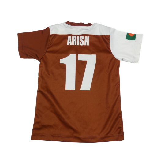 Hnědo-bílé sportovní tričko s číslem a nápisem