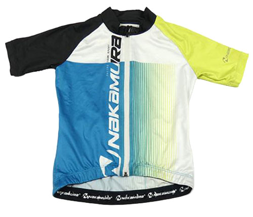 Bílo-modro-limetkové propínací cyklistické tričko Nakamura