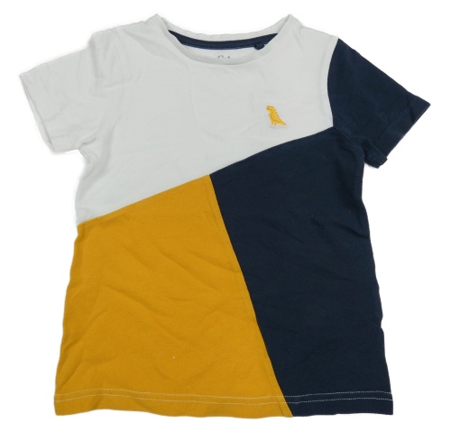 Bílo-tmavomodro-okrové tričko s výšivkou C&A