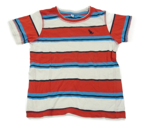 Červeno-bílo-modro-černé pruhované tričko s dinosaurem C&A