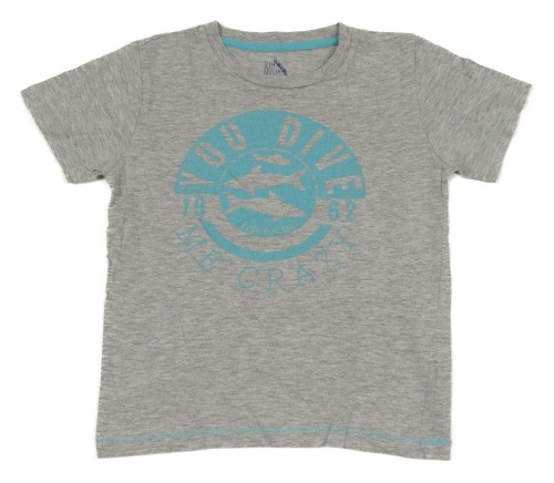 Šedé melírované tričko se žraloky a nápisy a číslem TOM TAILOR