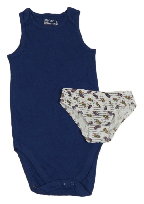 2Set - Tmavomodré nátělníkové body M&S + bílé pruhované slipy s auty St. Bernard