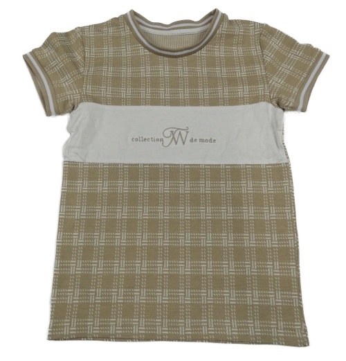 Pískovo-bílé kostkované tričko s nápisem Matalan