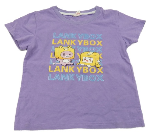 Fialové tričko s nápisem a obrázkem