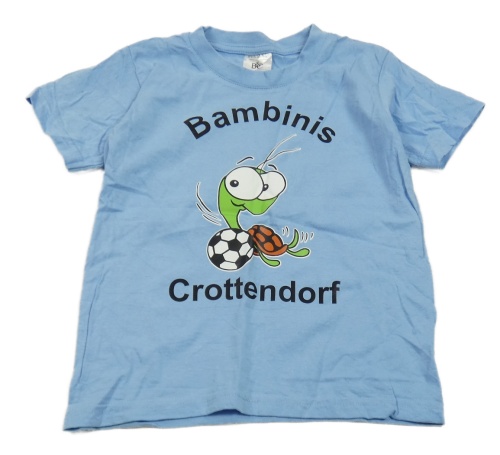 Modré tričko s nápisem a obrázkem