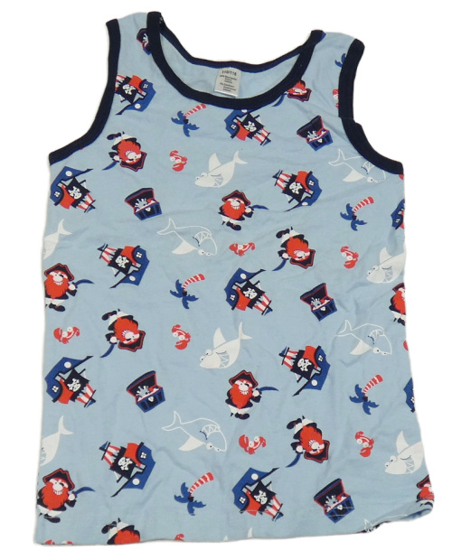 Světlemodro-tmavomodré tílko s piráty a žraloky a poklady