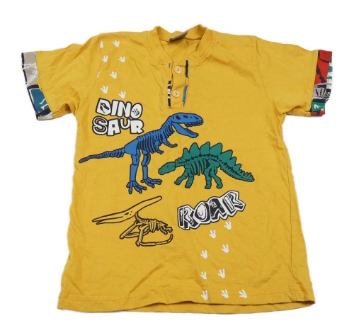 Okrové tričko s kostrami dinosaurů