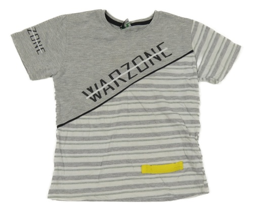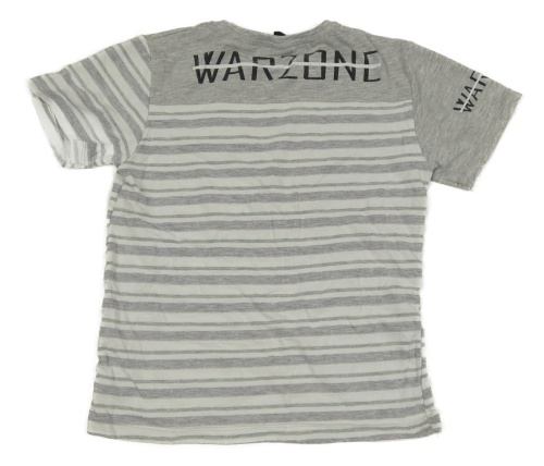 Šedo-bílo-olivovošedé pruhované melírované tričko s nápisem