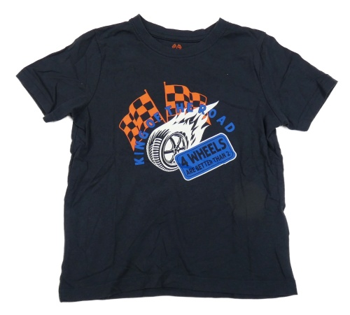 Tmavomodré tričko s praporky a pneumatikou lupilu