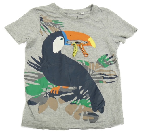 Šedé melírované tričko s tukanem a listy C&A