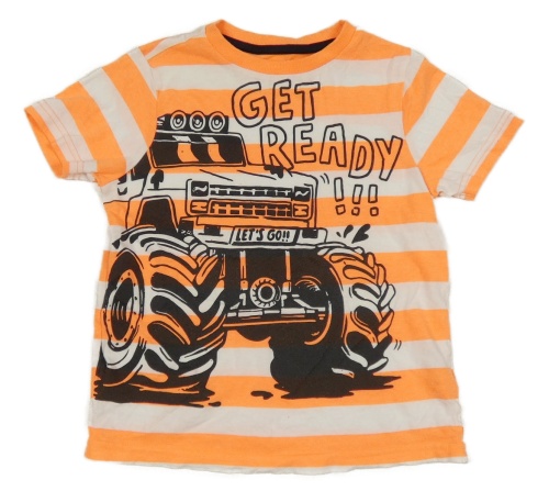 Bílo-neonově oranžové pruhované tričko s autem F&F