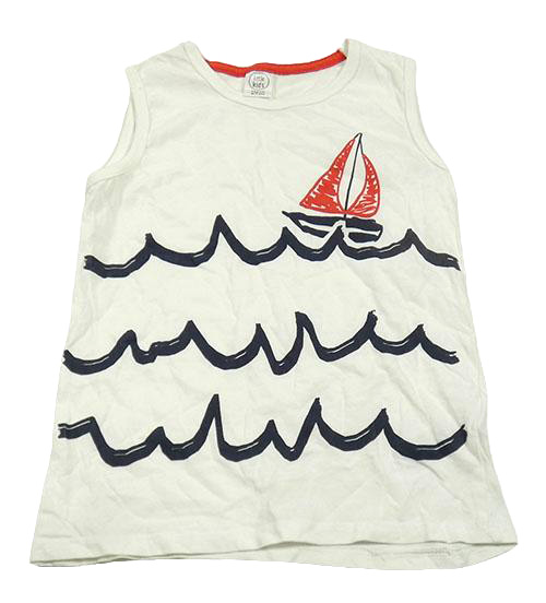 Bílé tílko s loďkou a vlnami Little Kids