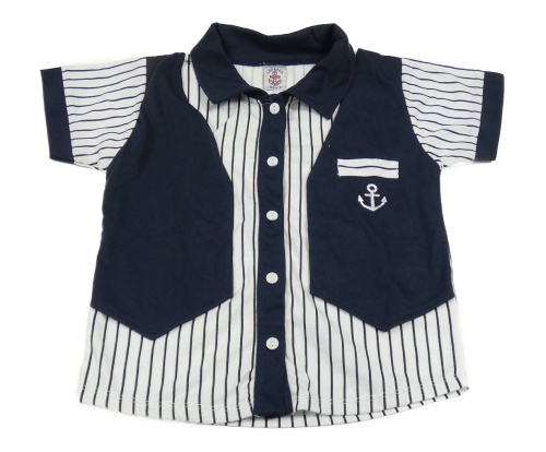 Tmavomodro-bílé pruhované propínací polo tričko s našitou vestou a kotvou
