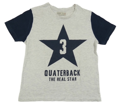 Světlešedo-tmavomodré melírované tričko s hvězdou s číslem a nápisy ZARA