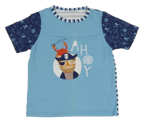 Modro-tmavomodro-pruhované tričko s pirátem a krabem