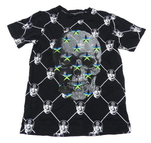 Černo-bílé kárované tričko s lebkami a kamínky DIAMOND CLUB