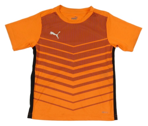 Neonově oranžovo-černé pruhované sportovní tričko s logem Puma