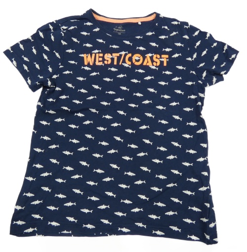 Tmavomodré tričko se žraloky a nápisem Topolino