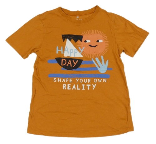Oranžovo-hnědé tričko se sluncem a nápisy H&M