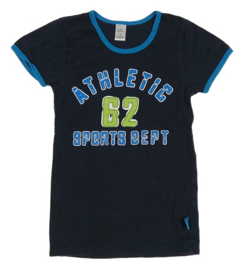 Tmavomodro-modré tričko s číslem a nápisy Topolino