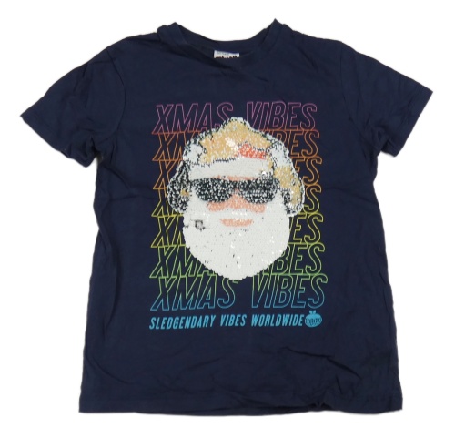 Tmavomodré vánoční tričko se Santou z flitrů George