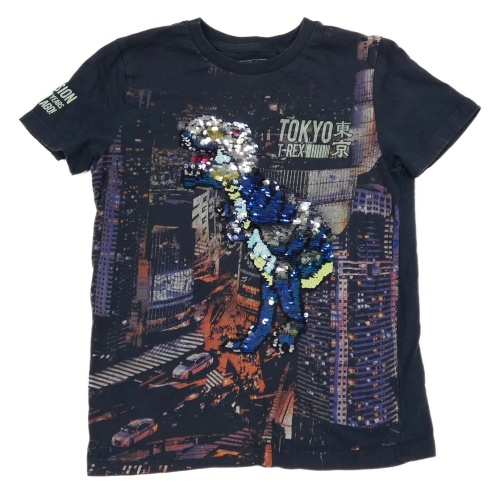Tmavomodré tričko s dinem z flitrů Next