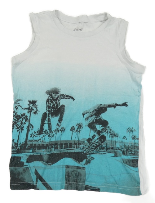 Bílo-světletyrkysové tílko se skateboardisty alive