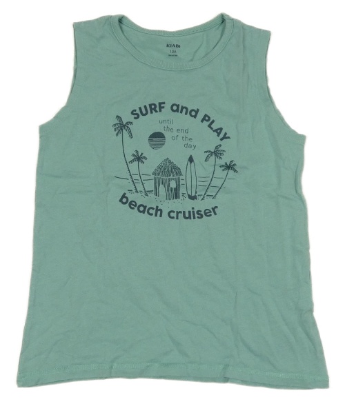 Olivové tílko s palmami a surfem a nápisy KIABI