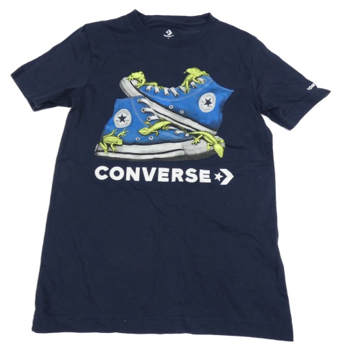 Tmavomodré tričko s botami a logem converse