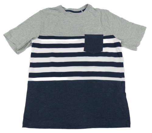 Tmavomodro-šedo-bílé pruhované tričko s kapsou Yigga