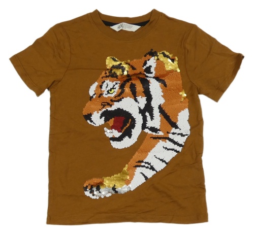 Hnědé tričko s tygrem z flitrů H&M