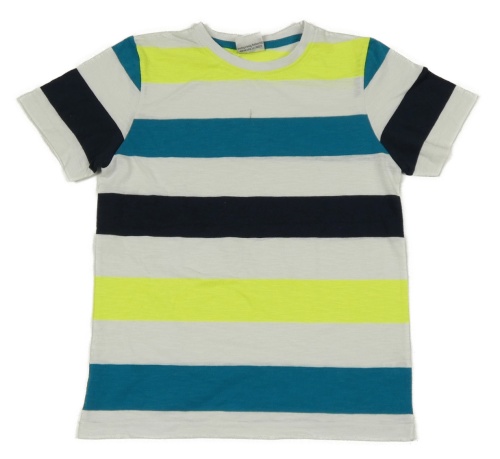 Bílo-modro-neonově žluté pruhované tričko Yigga