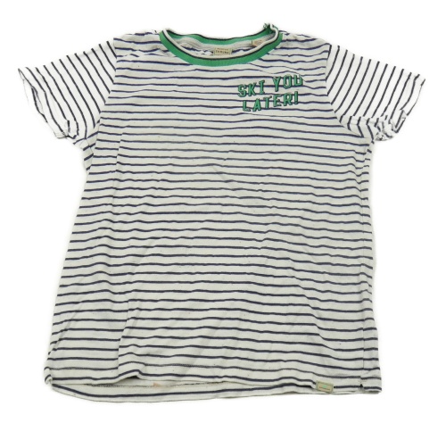 Bílo-tmavomodré pruhované tričko s nápisem