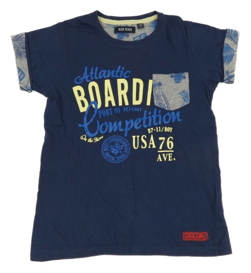 Tmavomodré tričko s nápisem a kapsou Blue Seven