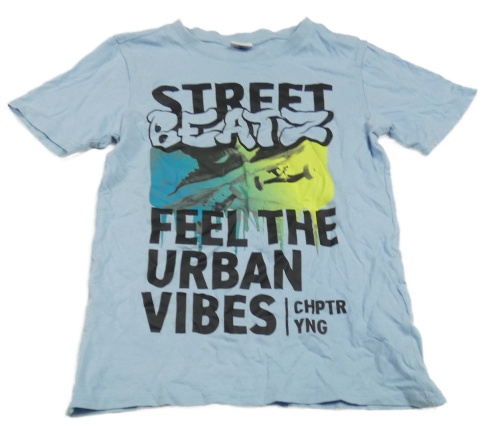 Světlemodré tričko s potiskem a nápisy Chapter young