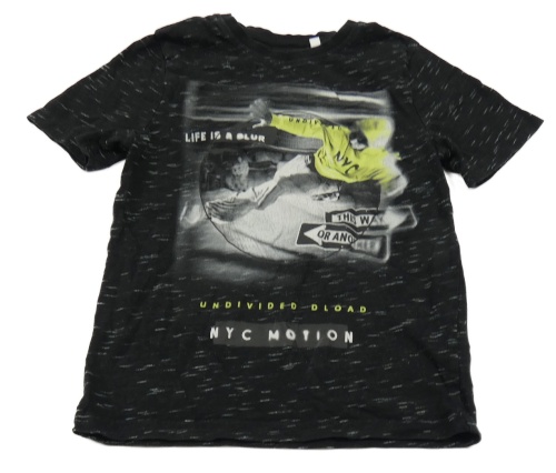 Černé melírované tričko s chlapcem a nápisy C&A