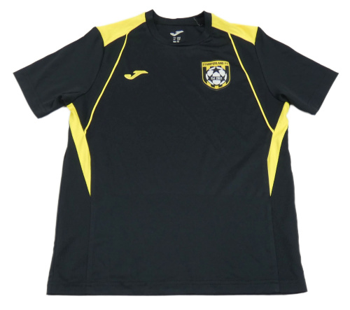 Černo-žluté sportovní funkční tričko s nášivkou a logem joma