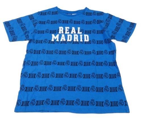 Modré pruhované tričko s nápisem