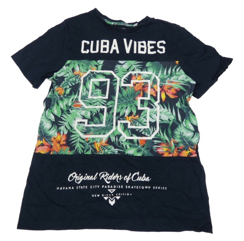 Tmavomodro-zelené tričko s nápisy a číslem a listy C&A