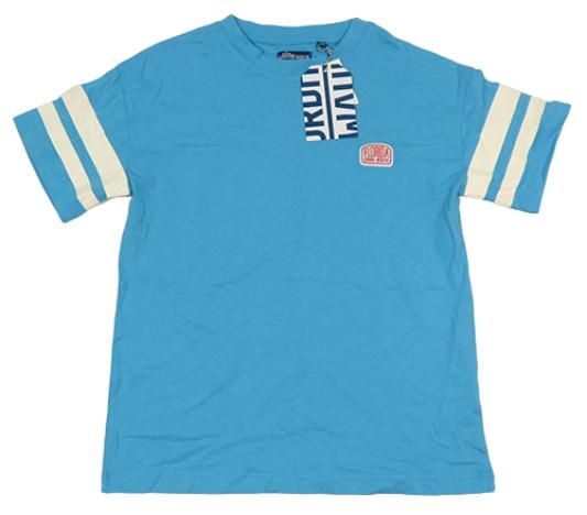 Nové - Modré tričko s výšivkou a pruhy na rukávech