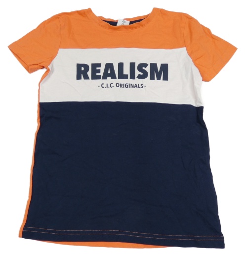 Oranžovo-tmavomodro-bílé tričko s nápisem Chapter young