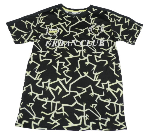Černo-bílo-žluté tričko s blesky a nápisem