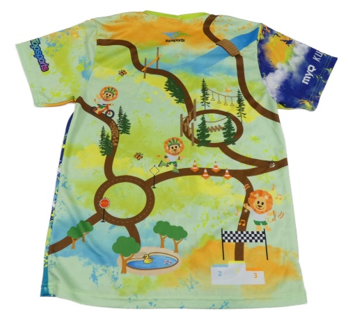 Zeleno-modro-oranžové vzorované sportovní tričko s nápisem