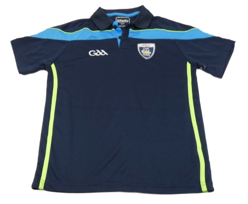 Tmavomodro-modré sportovní tričko se znakem a pruhy a límečkem O´neills