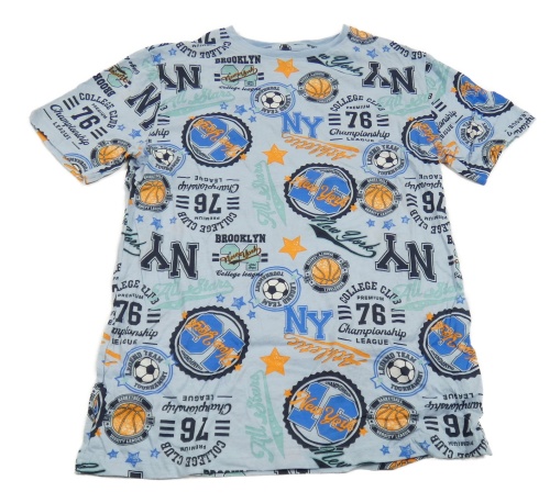 Světlemodré tričko s míči a čísly a nápisy St. Bernard