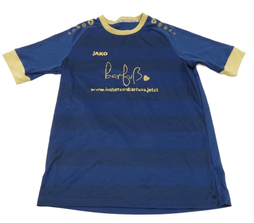 Tmavomodro-béžové funkční fotbalové tričko s logem a míčem JAKO