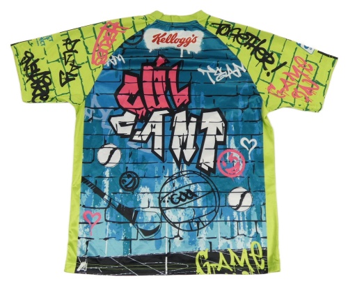 Zeleno-modré sportovní tričko s nápisy