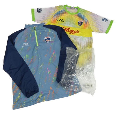 Nové - 2set - Bílo-barevné vzorované sportovní tričko s nápisy + Modrá vzorovaná sportovní mikina