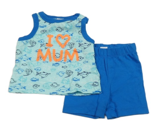 2set - Světlemodré tílko s rybami a nápisem + modré kraťasy Dopodopo